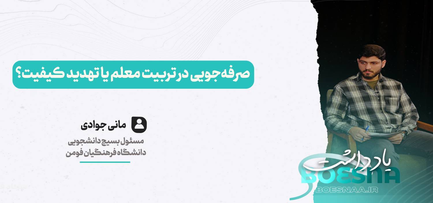 مانی جوادی،مسئول بسیج دانشجویی دانشگاه فرهنگیان مرکز فومن در خصوص نقدآیین نامه اجرایی بند ب ماده ۸۸ برنامه هفتم پیشرفت در یادداشتی نوشت: